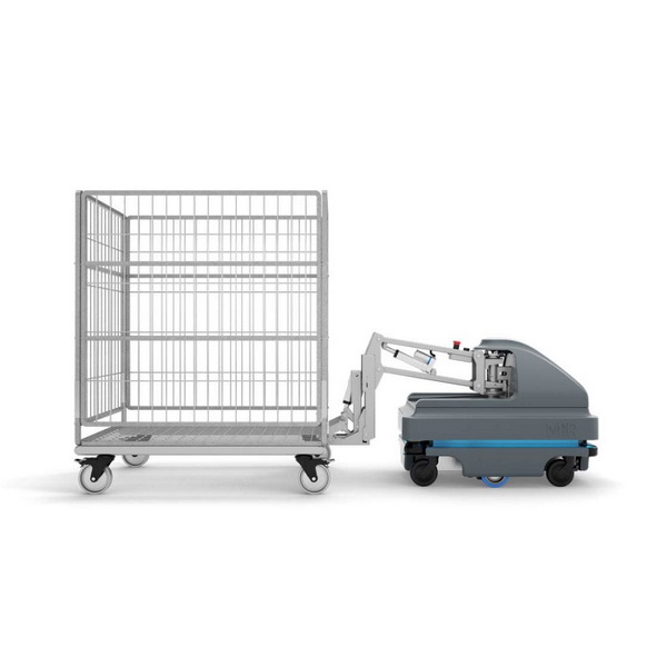 Increase the efficiency of internal transport tasks with a MiRHook200 ™ mobile robot, with increased payload. The MiRHook200 ™ is an efficient and user-friendly mobile robot for fully automatic trolley pick-up and towing in manufacturing facilities, logistics and healthcare facilities.